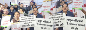 यहां कांग्रेसी विधायक नेता प्रतिपक्ष यशपाल आर्य के नेतृत्व में प्रदेश की ज्वलंत समस्याओं के समाधान की मांग को लेकर सदन के बाहर सीढिय़ों में पहुंचे और वहां पर हाथों में तख्तियां लेकर राज्य सरकार के खिलाफ नारेबाजी के बीच प्रदर्शन करते हुए धरना दिया। इस अवसर पर प्रदर्शनकारियों ने कहा कि प्रतापनगर विधानसभा क्षेत्र की देवकी देवी, हरवाल गांव निवासी रामचन्द्री देवी, ओनाल गांव की गर्भवती महिलाओं की मौत की उच्च स्तरीय जांच कराई जाये।