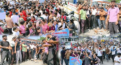 उत्तराखंड में बेरोजगार संघ द्वारा उठाया गया पेपर लीक मामला अब लगातार तूल पकडऩे लगा है। इस मामले को लेकर विकासनगर के मुख्य बाजार स्थित पेट्रोल पंप के सामने इक्कठा हुए सैकड़ों बेरोजगार युवक युवतियों का जन आक्रोश देखने को मिला। पहाड़ हो या मैदान सभी जगह पेपर लीक मामले को लेकर उत्तराखंड का युवां सड़कों पर दिखाई दे रहा है। रवि सर के नेतृत्व में सड़क पर प्रदर्शन कर रहे युवाओं ने उत्तराखंड की धामी सरकार के खिलाफ जमकर नारेबाजी करते हुए मुख्य बाजार में जन आक्रोश रैली निकाली। इस रैली के माध्यम से युवांओं द्वारा पूरे मामले की सीबीआई जांच की मांग, पेपर चोर गद्दी छोड़, हाकम का हाकिम कौन सहित भाजपा सरकार के खिलाफ नारे लगाते हुए पुतला दहन किया गया। यह जन आक्रोश रैली पेट्रोल पंप से शुरू होकर डाकपत्थर तिराहे, अस्पताल चौक, महाराजा अग्रसेन चौक, गीताभवन चौक से होती हुई मण्डी चौक पहुंची जहां पुतला दहन कर पेपर लीक मामले की सीबीआई जांच कराने की मांग करी गई। रैली के दौरान काफी संख्या मे पुलिस बल मौजूद रहा।